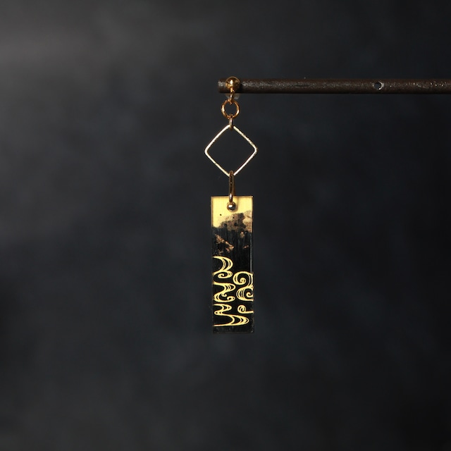 滲みと水つながりで親和性がある水流の紋様とを組み合わせ、渋さと動きがある作品にしました。 背景色に金・銀を用いることで、上品さと凛とした雰囲気を纏わせています。 凛とした雰囲気と水流という丸みのある柄がより目立つよう、直線的な長方形という形状にしています。 【サイズ】 高さ:5cm 幅:0.8cm 【 素材 】 水紋:アクリル イヤリング・ピアス金具:ステンレス その他金具:ステンレス、真鍮 【 作品の個体差について 】 当店の作品はすべて手作業でお作りしています。 そのため、色や形・大きさにわずかな違いが生じることがございます。 一点物ならではの風合いとしてお楽しみいただける方に向けたお品ですので、 見本写真と全く同じであることを重視される方や、細かな違いが気になる方はご購入をお控えください。 【 返品・交換について 】 恐れ入りますが、お客様都合による返品はお受けしておりません。 故障した場合の修理は、お気軽にご相談ください。