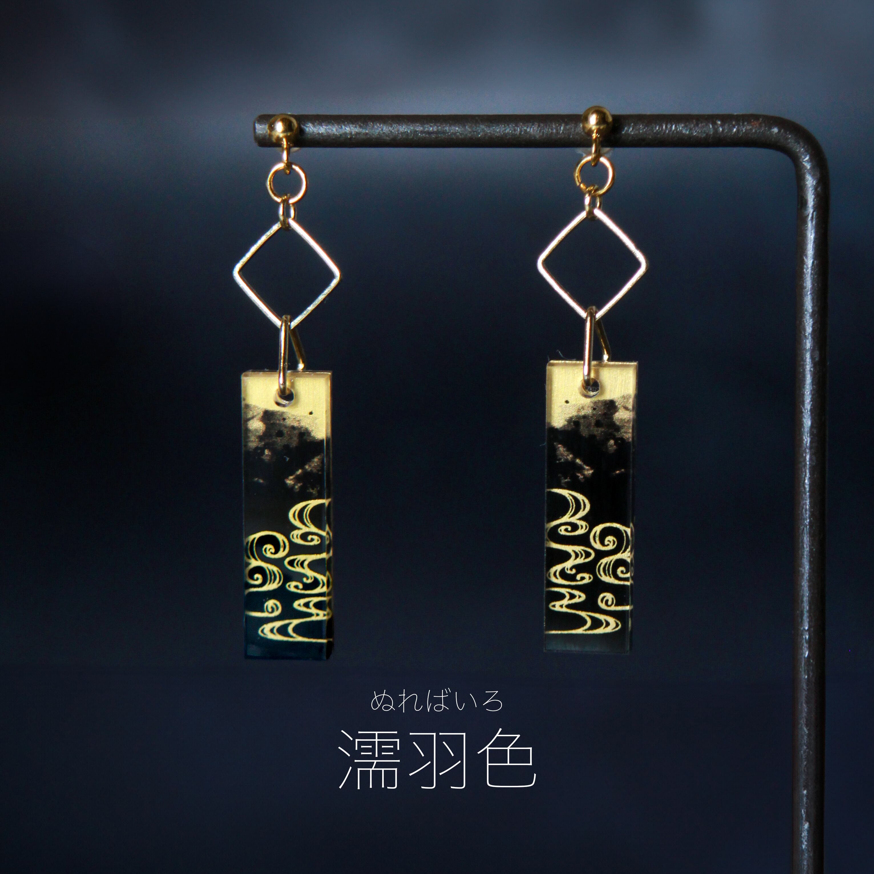 滲みと水つながりで親和性がある水流の紋様とを組み合わせ、渋さと動きがある作品にしました。